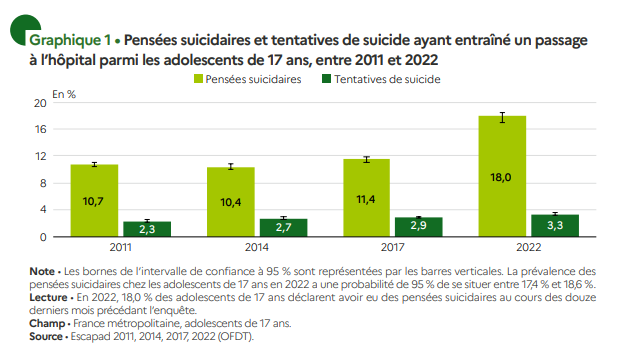 1 adolescent sur 10 présente des idées suicidaires au cours de l’année.